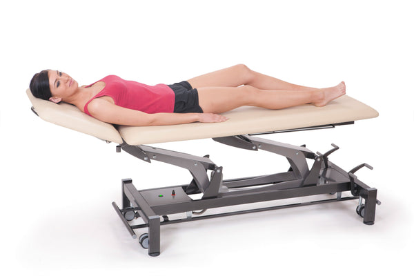 - Broad Height Adjustment Range: The electric high/low system adjusts from a low entry point of 49 cm up to a working height of 101 cm. This extensive range creates a safer environment for patients mounting or dismounting the table while protecting the therapist's back by allowing for precise ergonomic positioning.