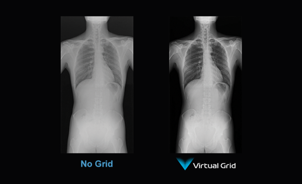 Intelligent processing simulates grid use, improving contrast and clarity while reducing radiation dose by up to 50% for grid-free acquisitions.